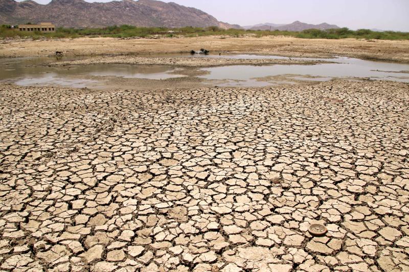 A general view of a lake running dry on a hot summer day near Ajmer on June 2, 2019.