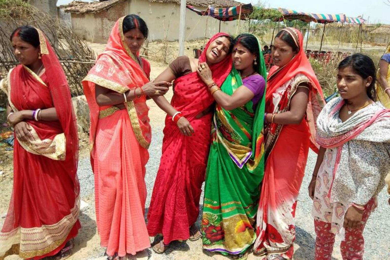 Indian relatives mourn following the rape and murder of a 16-year-old girl at Raja Kundra Village on May 5, 2018.