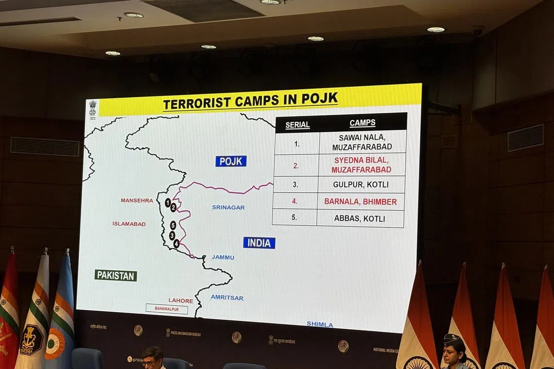 An Indian government media briefing on May 7 included a map showing the location of Indian strikes in Pakistan.
