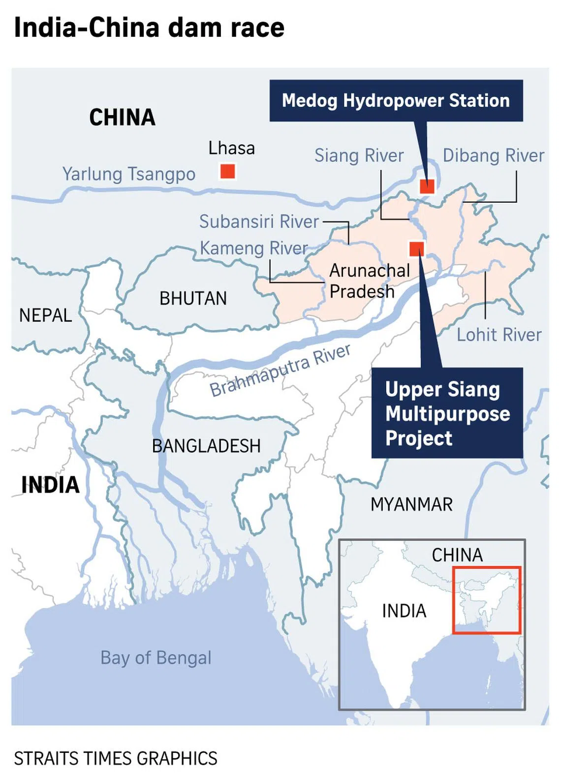 In recent years, the vast Brahmaputra river basin has become a geostrategic battlefield for water and security between India and China, a contest that has further intensified with these two big dams.