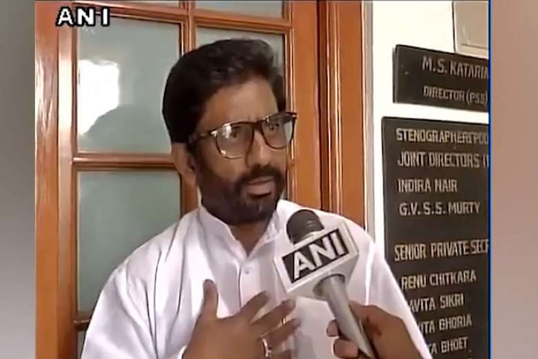 Ravindra Gaikwad (above, in a screenshot from an earlier interview) repeatedly struck an Air India steward with his sandal in March.