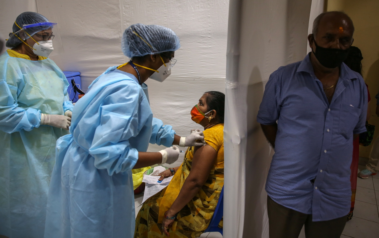 A woman receives a shot of the Covid-19 vaccine during a mass vaccination drive in Mumbai on Aug 19, 2021.