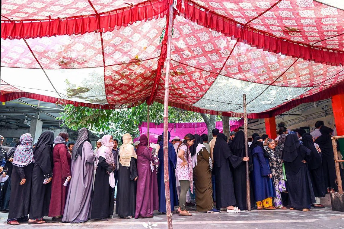 Voters wait in line at a polling station during the sixth phase of voting for national elections in Delhi, on May 25.