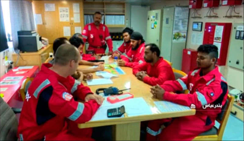 Images from inside the ship released by Iranian authorities on Monday showed some Indian crew members sat around a table, chatting and smiling. Two members could be seen cooking in the ship's kitchen.