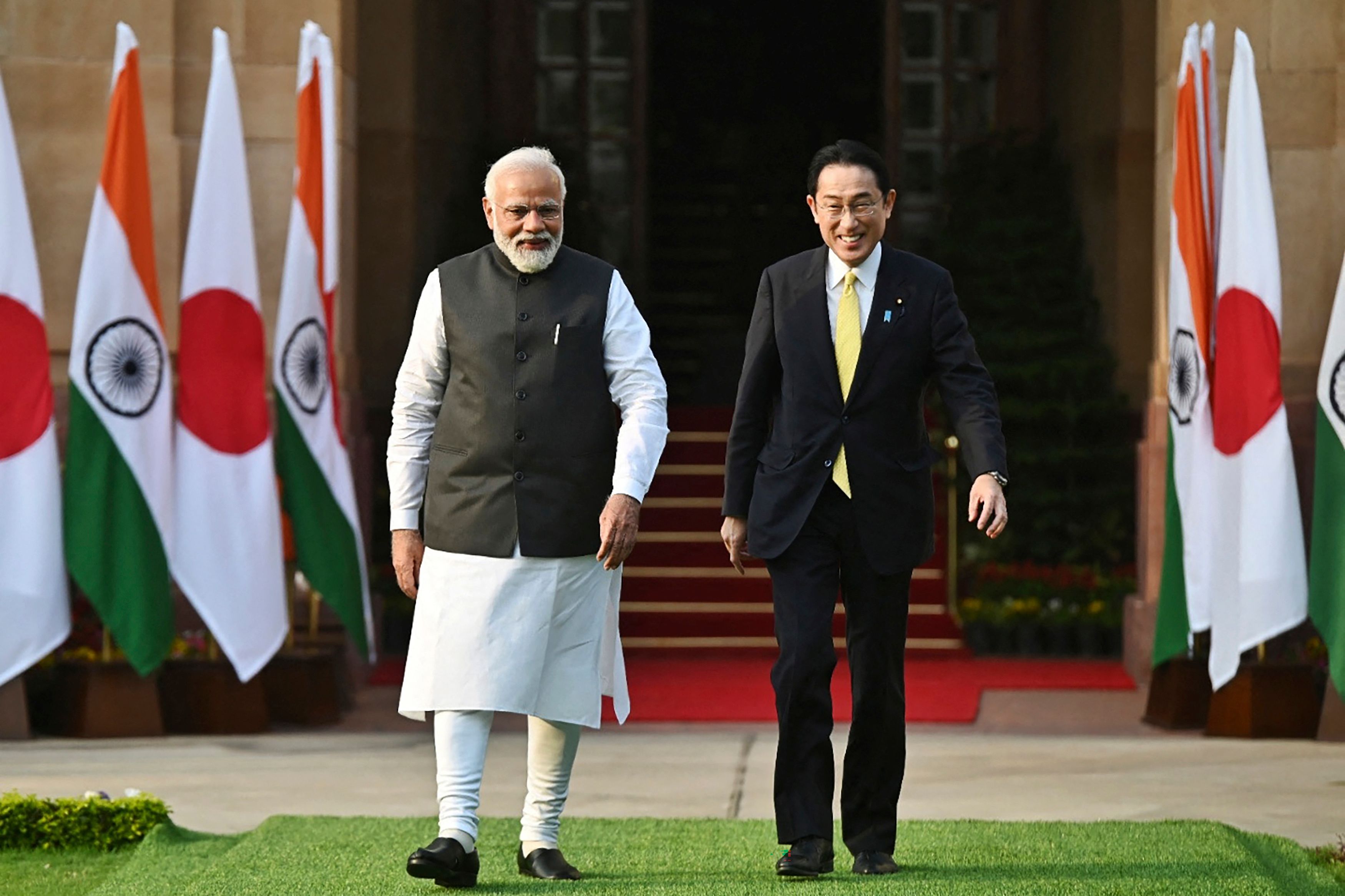 India's Prime Minister Narendra Modi (left) and his Japanese counterpart Fumio Kishida in New Delhi on March 19, 2022.