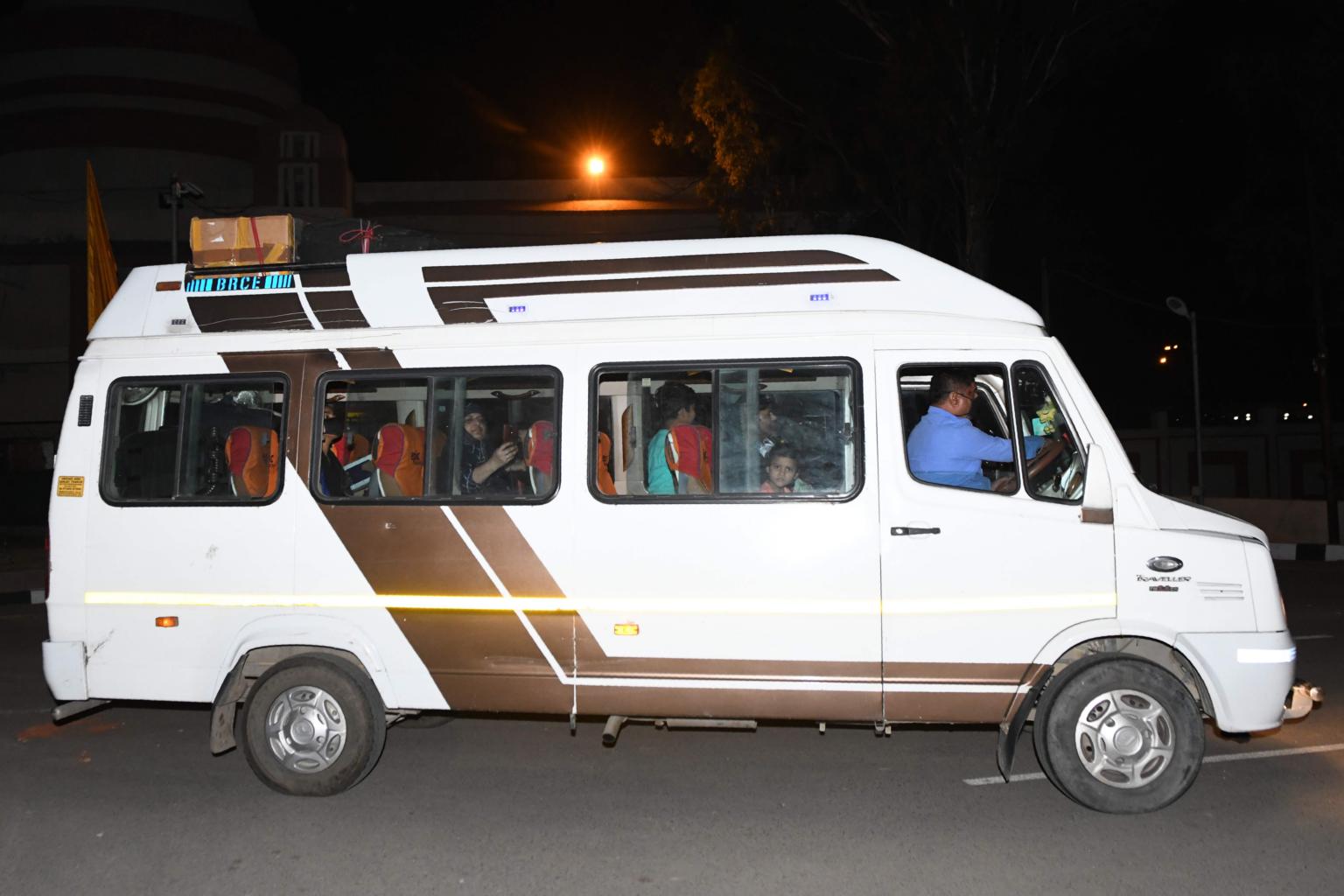 A bus transports two expelled officials of the Pakistan High Commission and their families, on June 1, 2020.