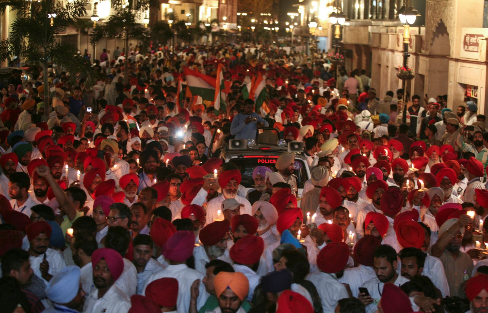 A candle light vigil outside Jallianwala Bagh memorial to mark 100th anniversary of Jallianwala Bagh massacre in Amritsar, India, on April 12, 2018.