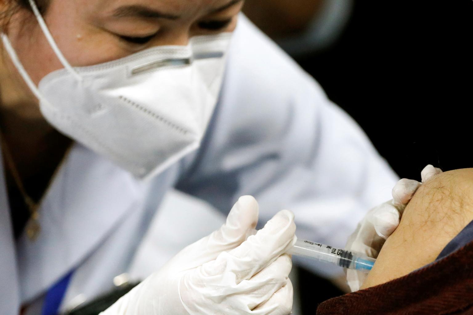 A healthcare worker receives the Bharat Biotech's Covaxin vaccine at All India Institute of Medical Sciences hospital in New Delhi.