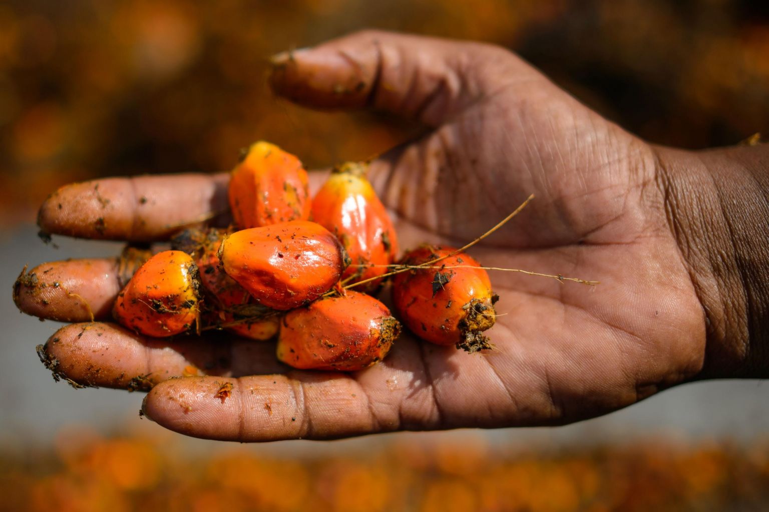 In a photo taken on Nov 20, 2014, a worker shows palm oil fruits at a factory in Sepang, outside Kuala Lumpur.