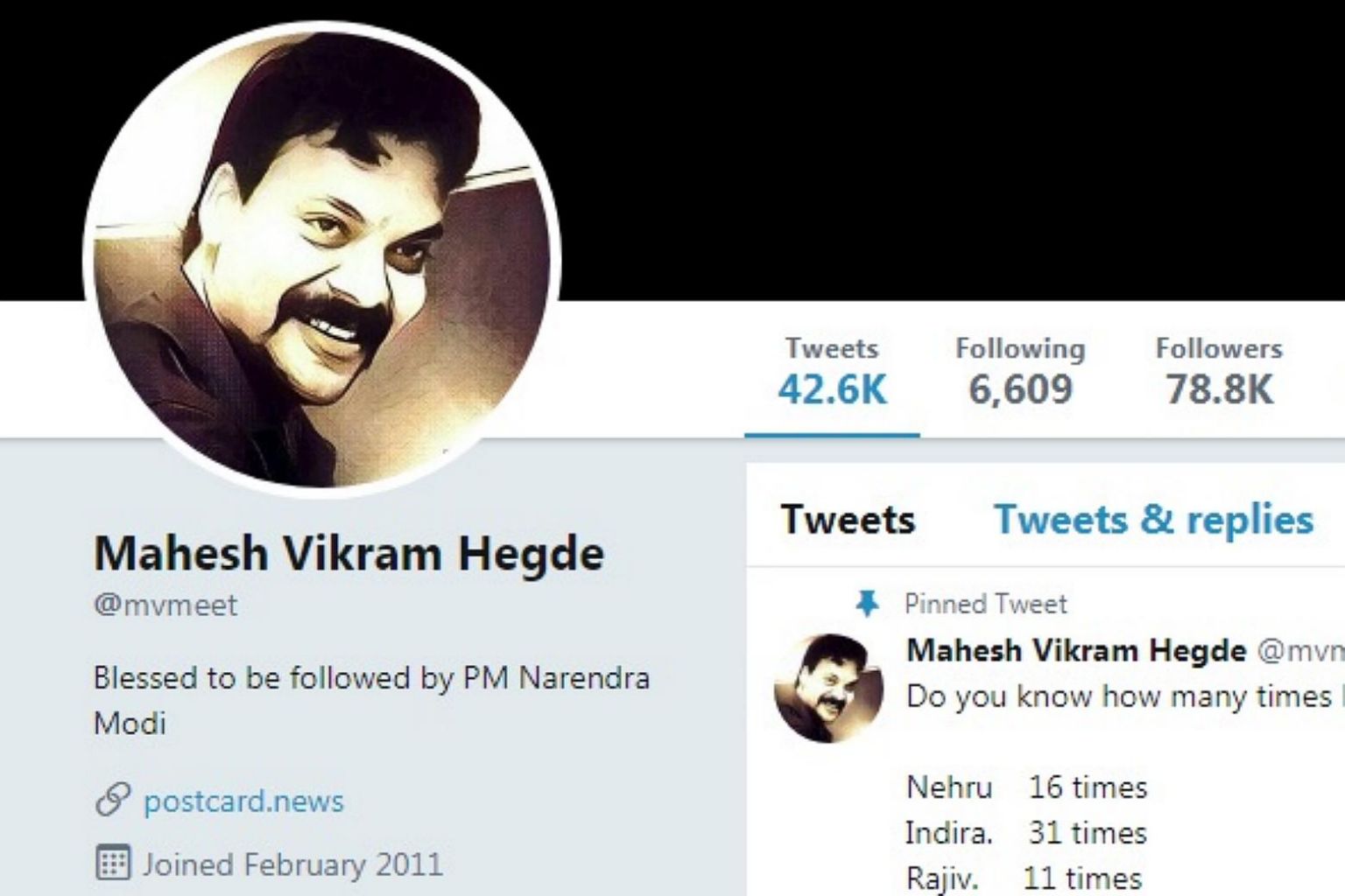Mr Hegde also shared the "news" on Twitter where Indian Prime Minister Narendra Modi is one of his more than 78,000 followers.