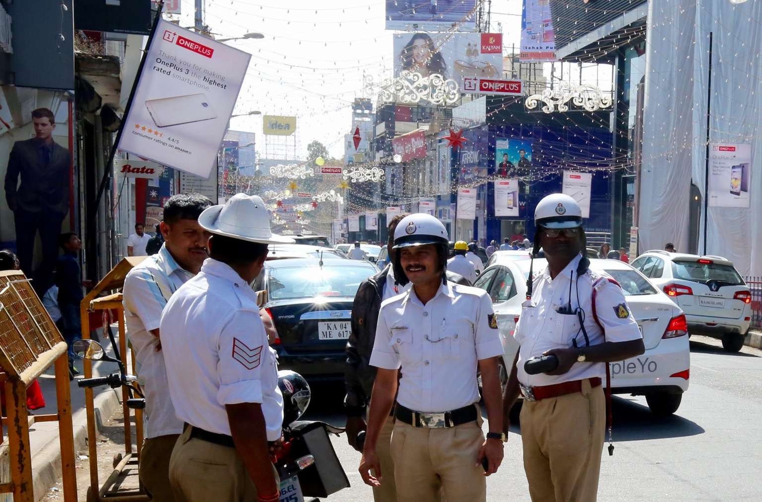 Policemen patrolling the streets in Bangalore, India, following the mass molestation incidents reported on New Year's Eve (Dec 31).