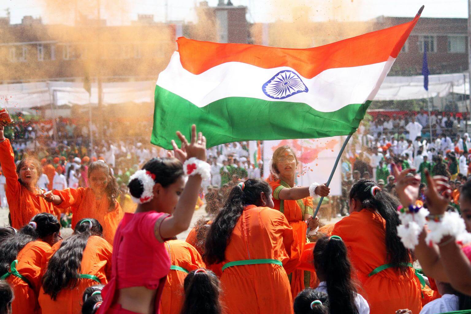 File photo showing Indian school children performing a cultural dance in Kashmir, India, on Aug 15, 2017.