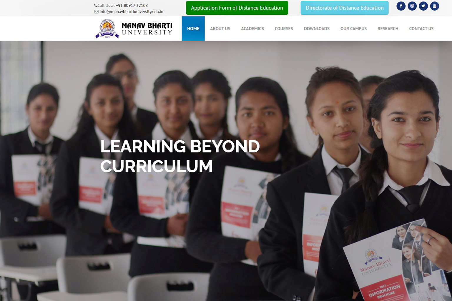 A screenshot of Manav Bharti University's website. Investigators say the university in the northern state of Himachal Pradesh sold degrees through agents to students in 17 states.