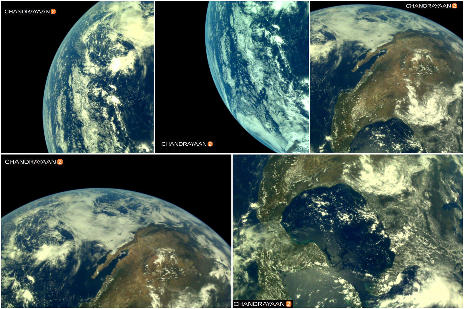 Pictures of the Earth taken from the Indian Space Research Organisation's Chandrayaan-2.