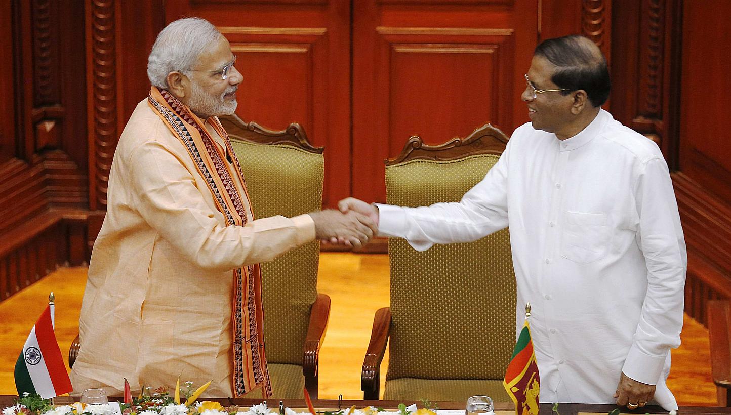COLOMBO (Reuters) - When Sri Lanka's President Maithripala Sirisena received India's Prime Minister Narendra Modi at an ocean-front colonial building on Friday, the two looked out over a US$1.4 billion (S$1.93 billion) Chinese real estate project halted days ago after criticism from New Delhi.