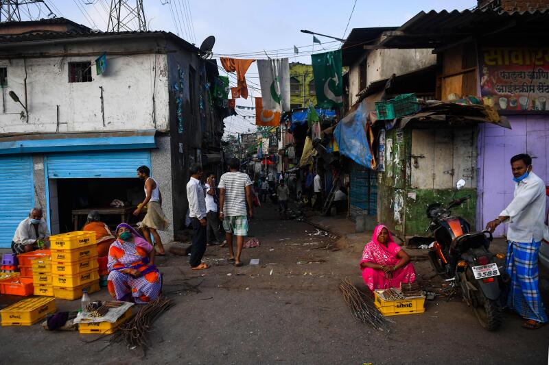 People are seen in the Dharavi slum in Mumbai on April 6, 2020.