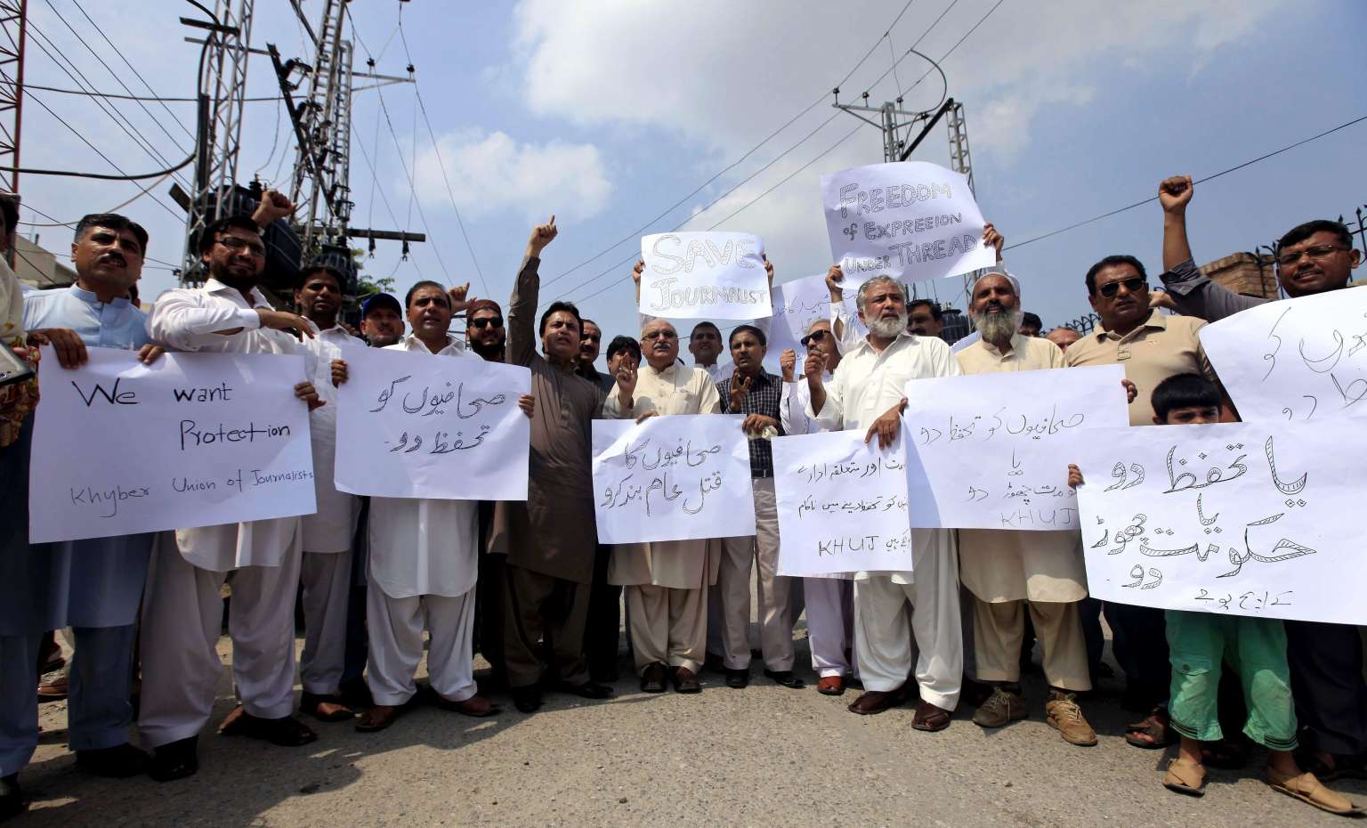 Pakistani journalists shout slogans during a protest to mourn the victims of suicide bomb attack in Quetta, in Peshawar, Pakistan. At least 70 people mostly lawyers and two journalists, were killed when a bomb exploded when dozens of lawyers and journalists gathered outside the civil hospital following the assassination of a lawyers senior fellow in a target killing in Quetta.