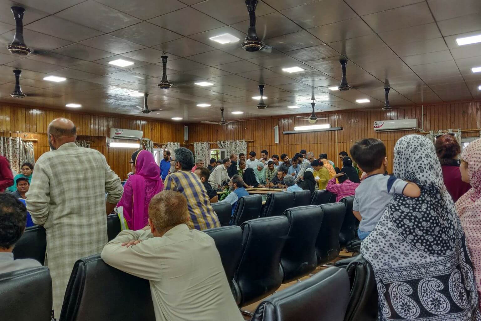 Only two mobile phones with an outside line are on offer in the deputy commissioner's office, but so desperate are people to contact families in the rest of India and overseas that they come from across Srinagar and beyond to wait in line.