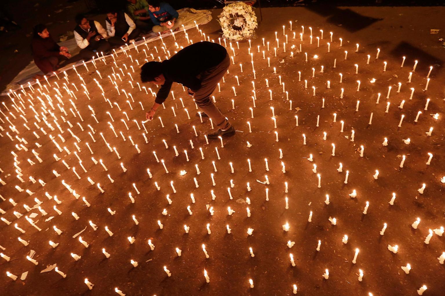 In a photo from Dec 16, 2013, a protester lights candles during a candlelight vigil to mark the first anniversary of the Delhi gang rape, in New Delhi.