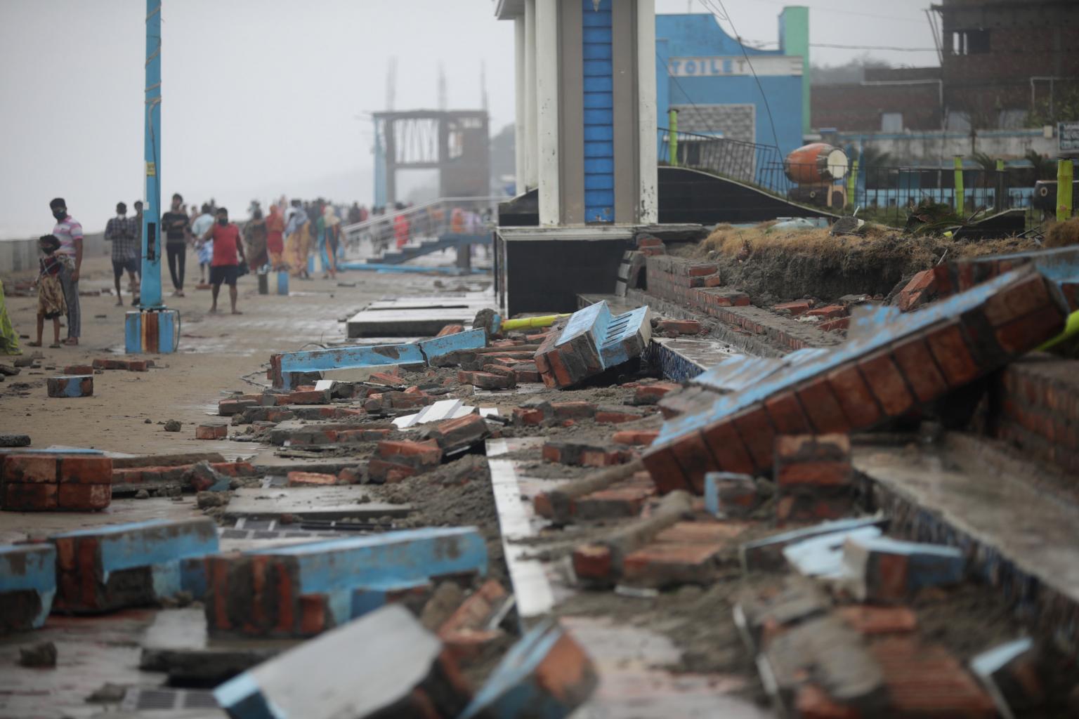 Locals inspect the damages after Cyclone Yaas hit Digha town near Bay of Bengal, on May 26, 2021.
