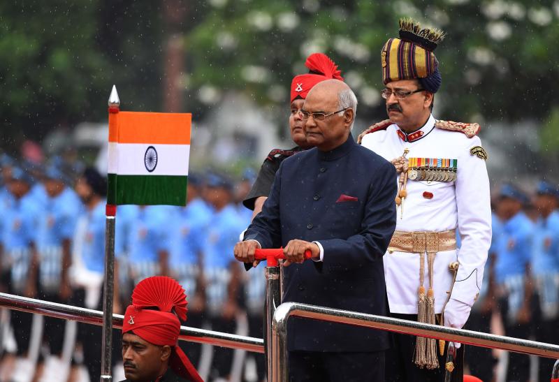 Incoming Indian president Ram Nath Kovind inspects a guard of honour during a ceremony at the Presidential Palace in New Delhi on July 25, 2017.