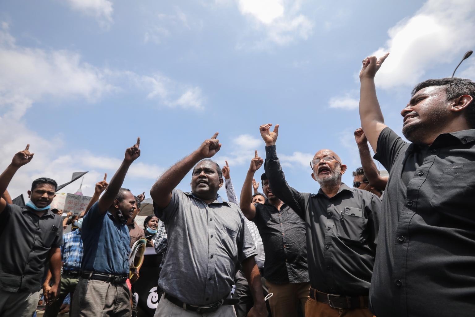Sri Lankan state sector employees protest against the country’s president in Colombo, Sri Lanka, on April 20, 2022.