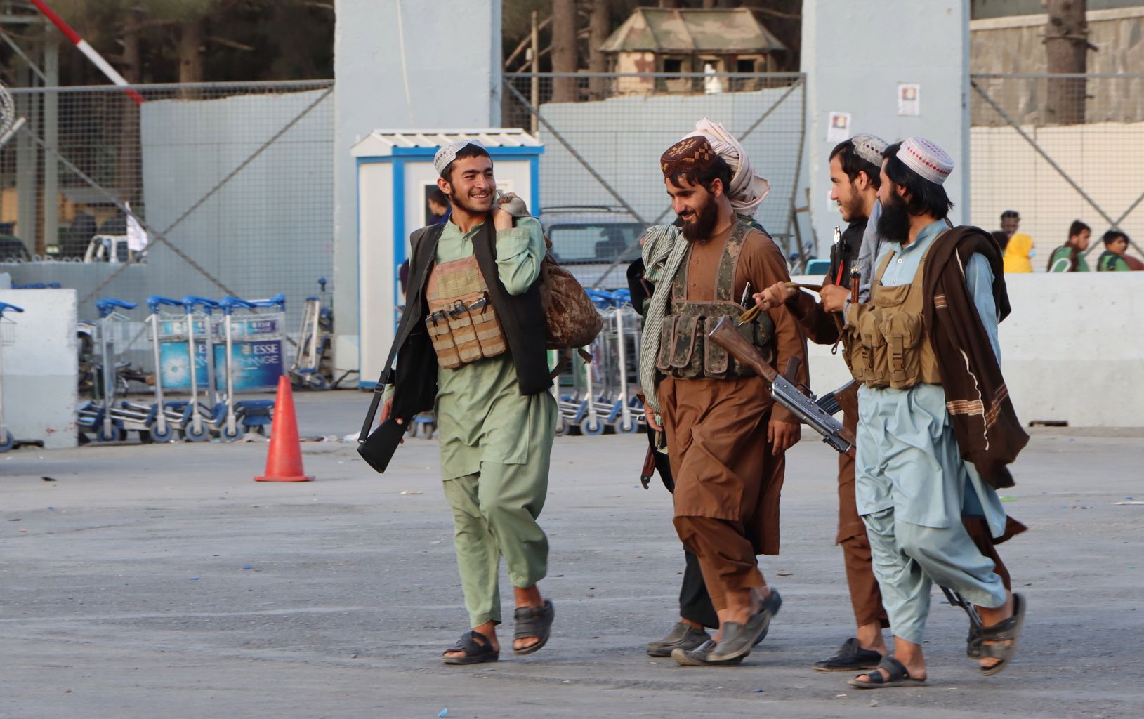 Taleban fighters patrol outside Hamid Karzai International Airport in Kabul, on Aug 28, 2021.