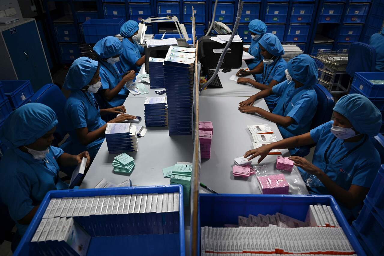 Employees work at a production line of Intraocular lens at Aurolab in Madurai, India on Sept 25, 2021.