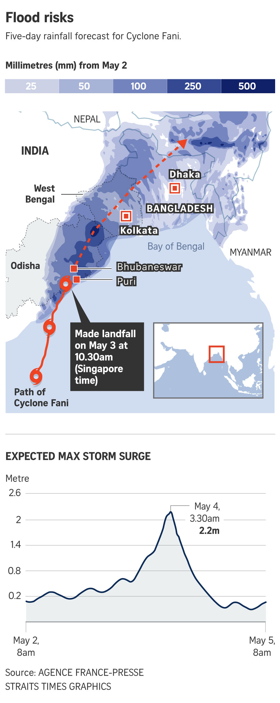 Bangladesh, which lies further up the path of Tropical Cyclone Fani, ordered the evacuation of 2.1 million people before the storm arrives on Saturday.