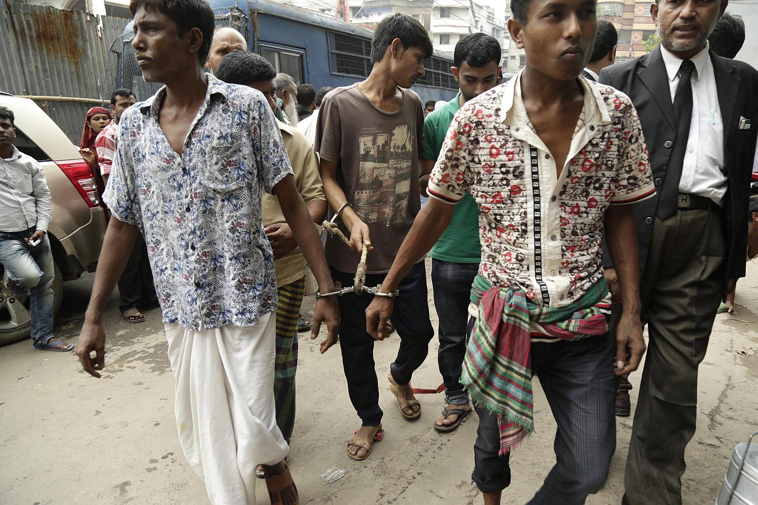 Four men move towards the court as they have been arrested during the anti-terror crackdown across the country in Dhaka, Bangladesh, on June 12.