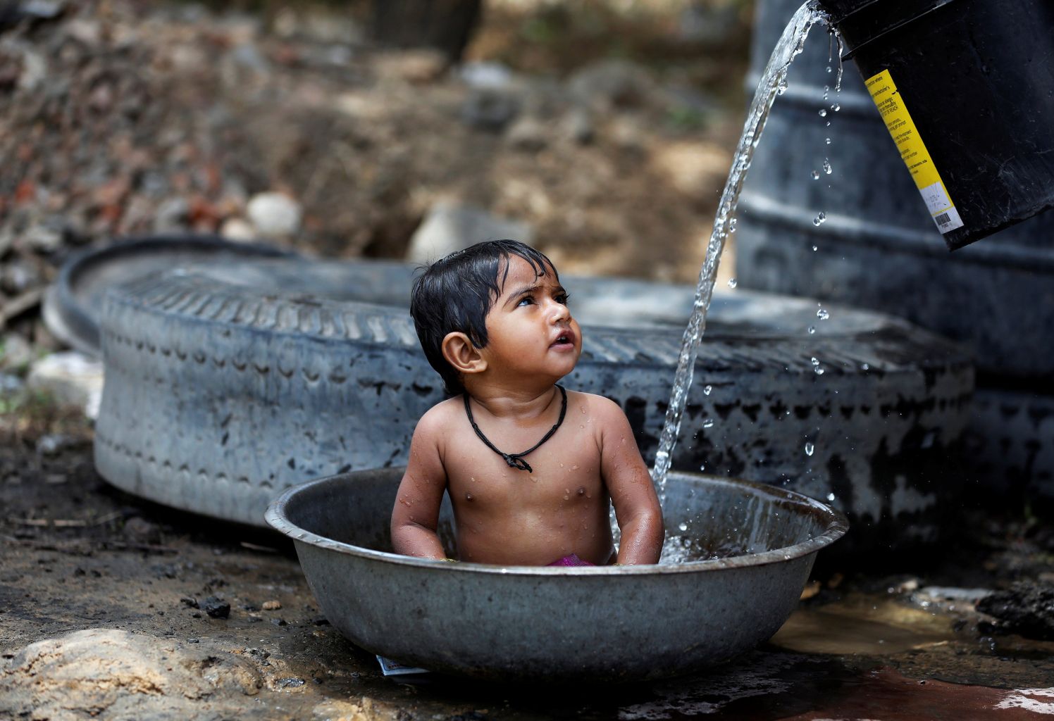 A baby girl is cooled by her mother on a hot summer day in Ahmedabad, India, May 2, 2017.