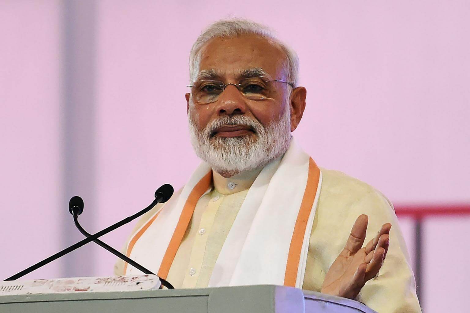 Indian Prime Minister Narendra Modi giving a speech during an event, on June 29, 2017.