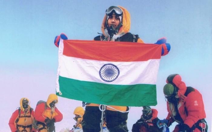 A photo posted by Dinesh Rathod on his Facebook account purporting to depict his wife, Tarakeshwari Rathod, at the summit of Mount Everest.