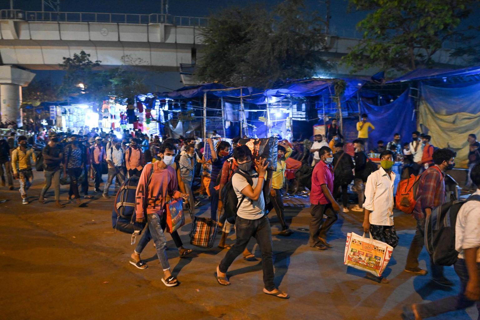 The images were reminiscent of India's first strict lockdown in late March last year, when hundreds of thousands of workers fled cities as their daily wages dried up with just a few hours of notice.