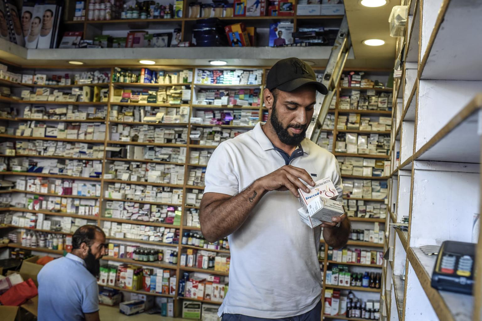 Pharmacist Masroor Nazir checks his stock of a medicine at his shop in Srinagar, Kashmir, on Aug 11, 2019.