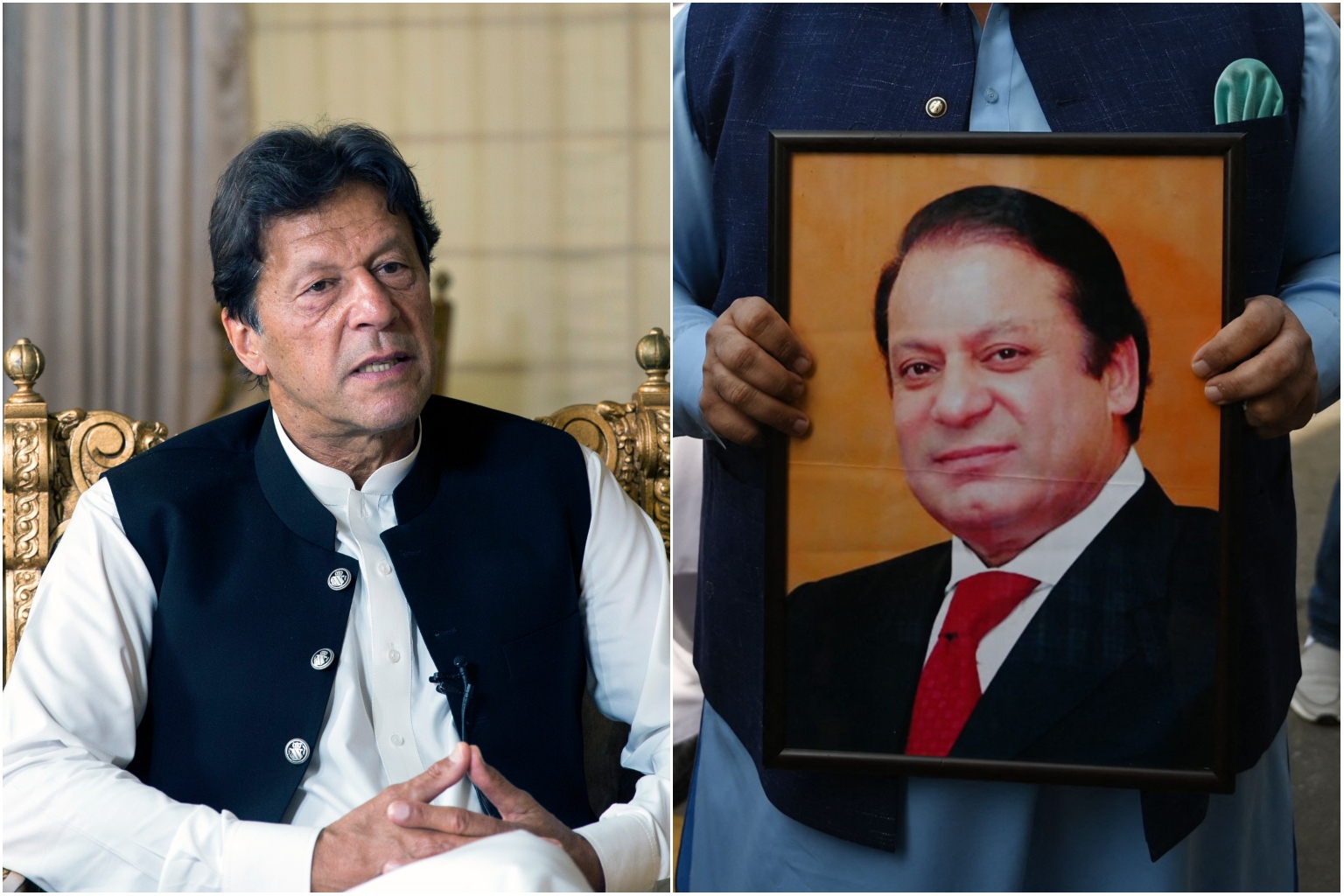 Former Pakistani prime ministers Imran Khan (left) and Nawaz Sharif.