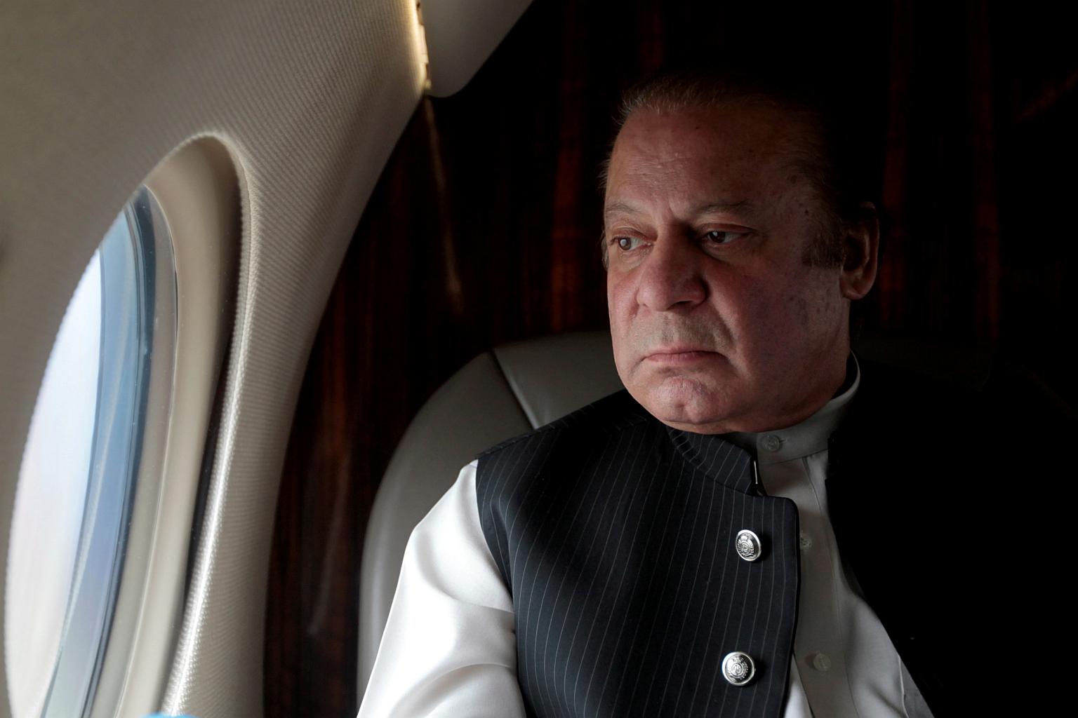 Pakistani Prime Minister Nawaz Sharif looks out the window of his plane after attending a ceremony to inaugurate the M9 motorway between Karachi and Hyderabad, Pakistan on Feb 3, 2017.