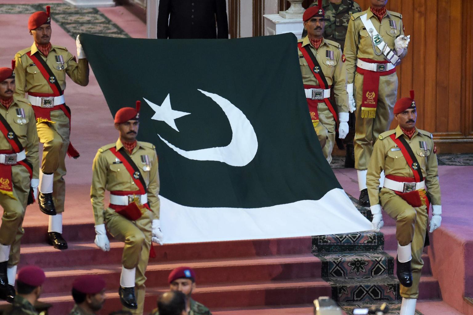 Pakistani soldiers carry national flag during a ceremony to mark the country's Independence Day in Islamabad on Aug 14, 2017.