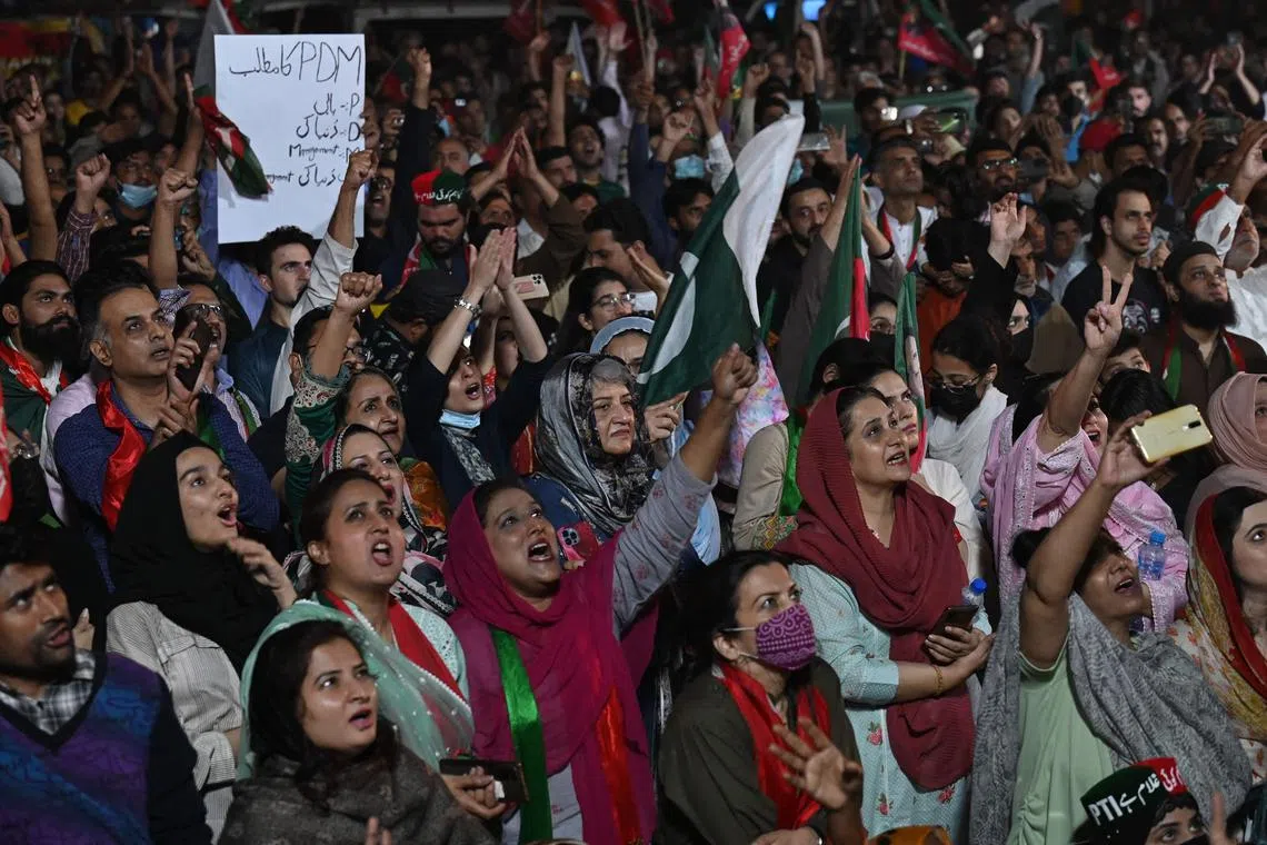 Supporters of former Pakistan PM Imran Khan take part in a protest in Lahore on Nov 5, 2022.