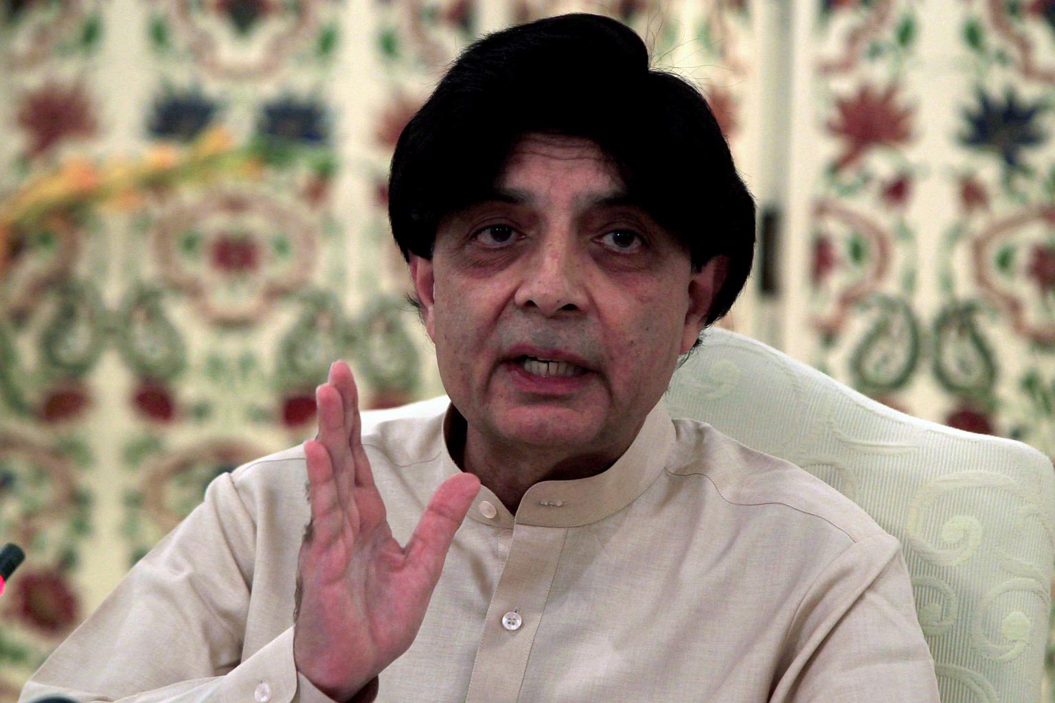ISLAMABAD (REUTERS) - Pakistani Interior Minister Nisar Ali Khan said on Thursday (July 27) he would quit his post after the Supreme Court rules on corruption accusations against Prime Minister Nawaz Sharif, whatever the result.