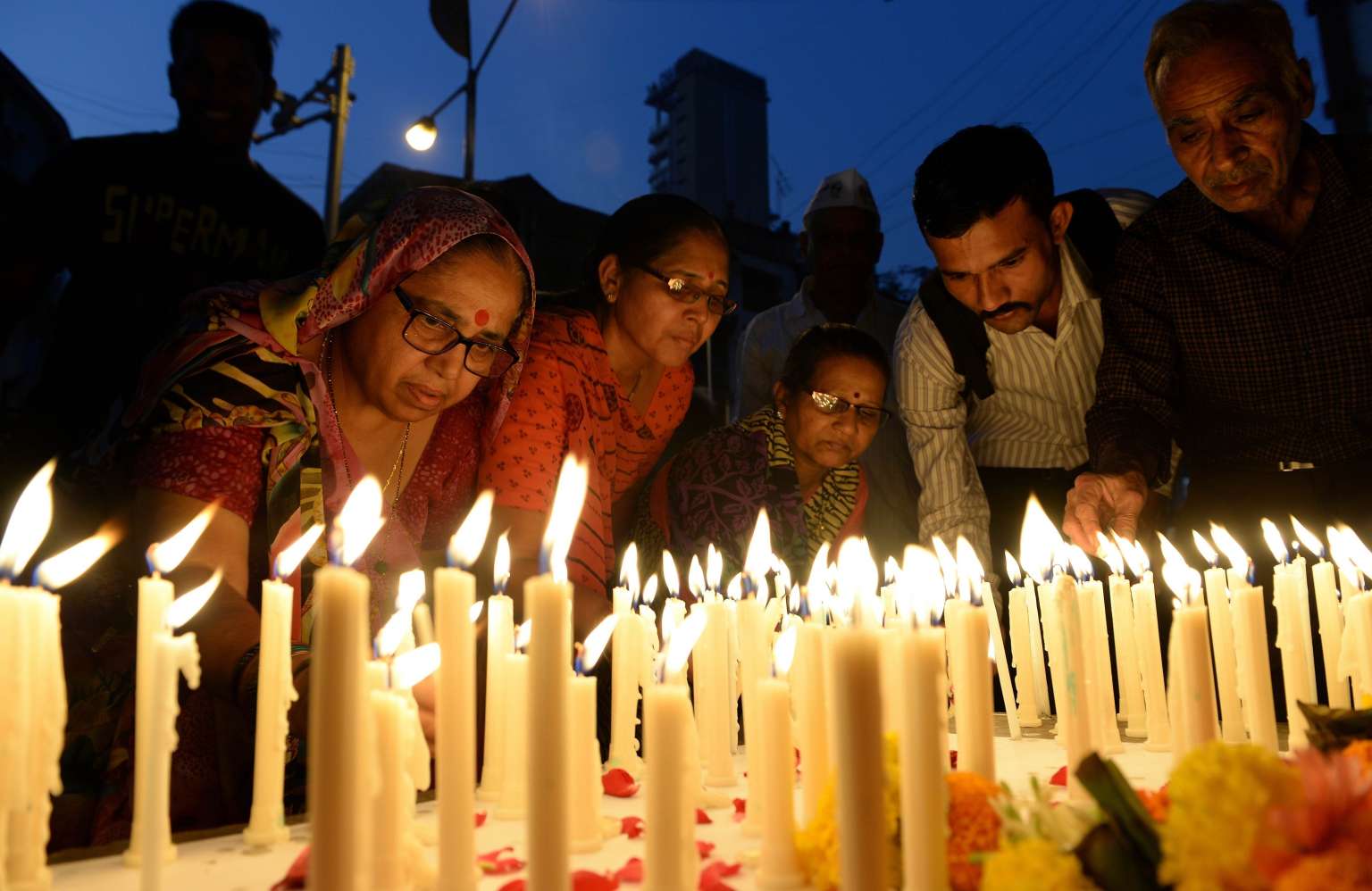 Mourners light candles during a vigil for Indian soldiers killed in an attack on an air force base in Mumbai.