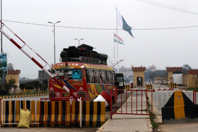 Pakistani and Indian flags fly in their respective countries at Pakistan-India joint border Wagah, near Lahore, Pakistan, on March 1, 2019.
