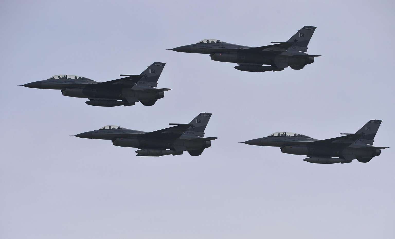 Pakistani F-16 fighter jets fly past during the Pakistan Day military parade in Islamabad, on March 23, 2016.