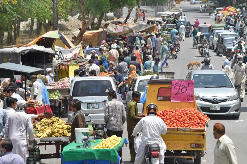 People gather at a Sunday market in Lahore on May 17, 2020.