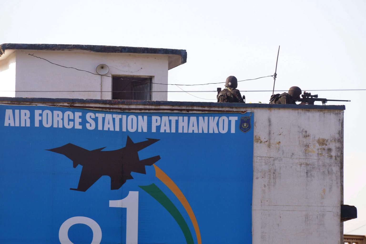 Indian commandos overlook the air force base in Pathankot on Jan 5, 2016.