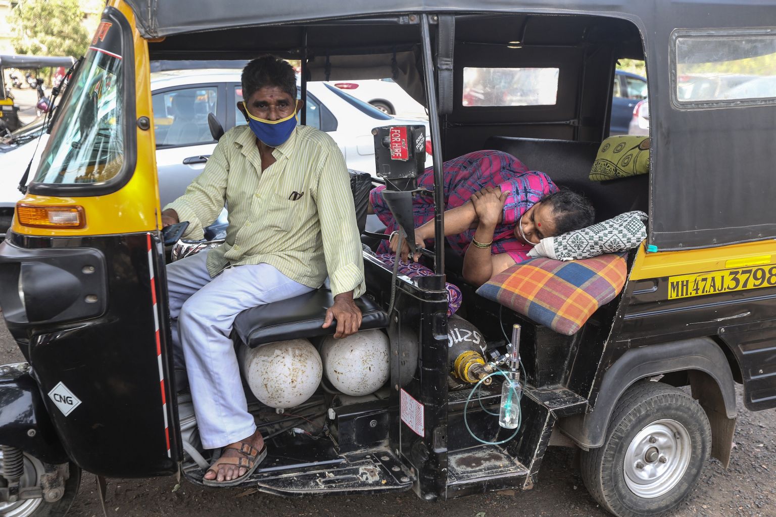 A suspected Covid-19 patient waits in an autorickshaw at a Covid-19 centre in Mumbai, on April 21, 2021.