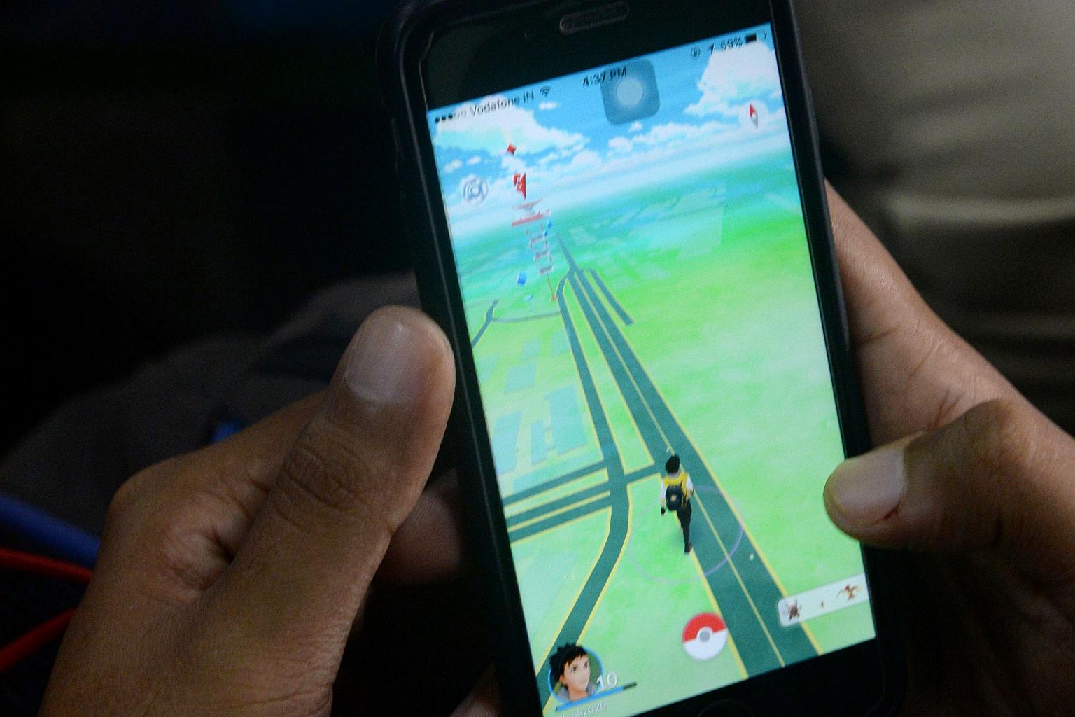 An office worker plays Pokemon Go while commuting to work on a local train in Mumbai, on July 28, 2016.
