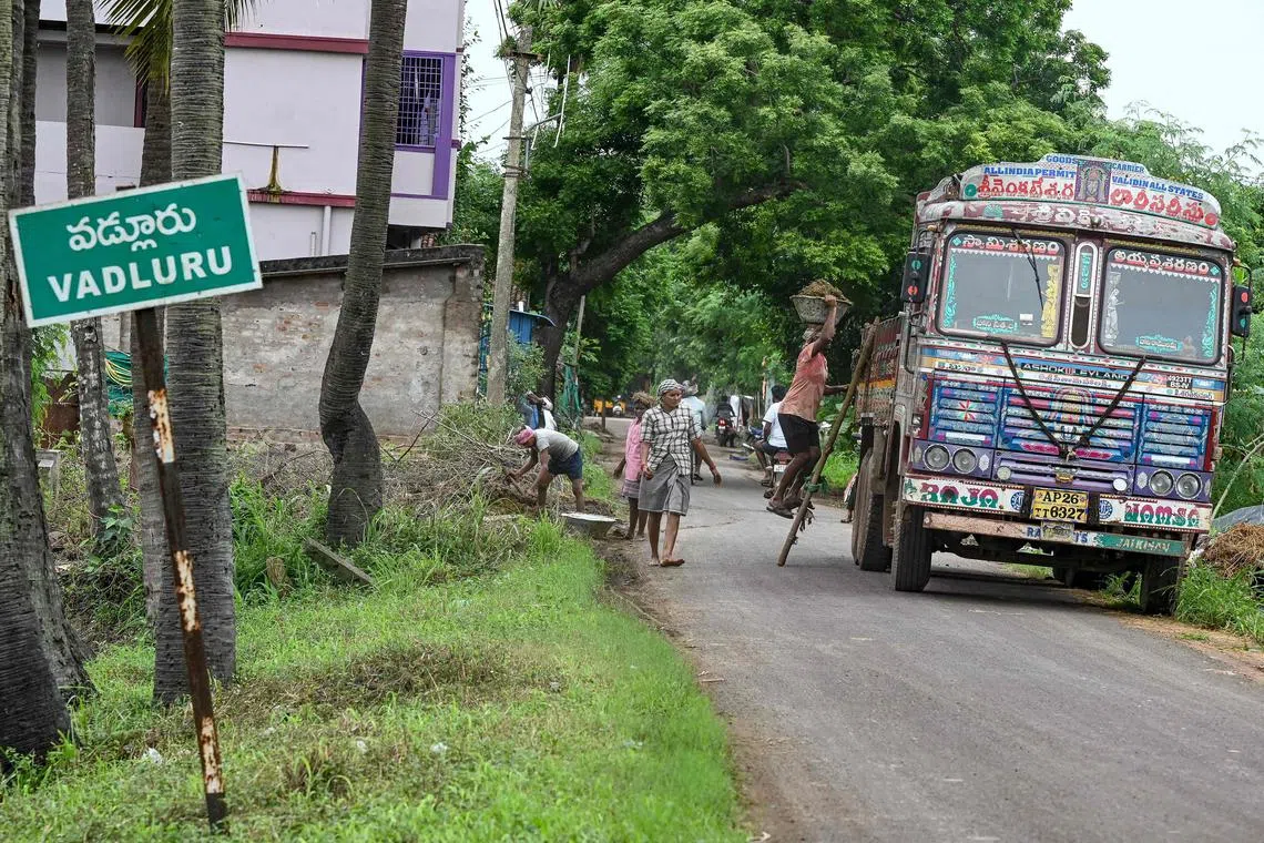 Labourers work along a street in Vadluru, the ancestral village of Ms Usha Vance’s parents.