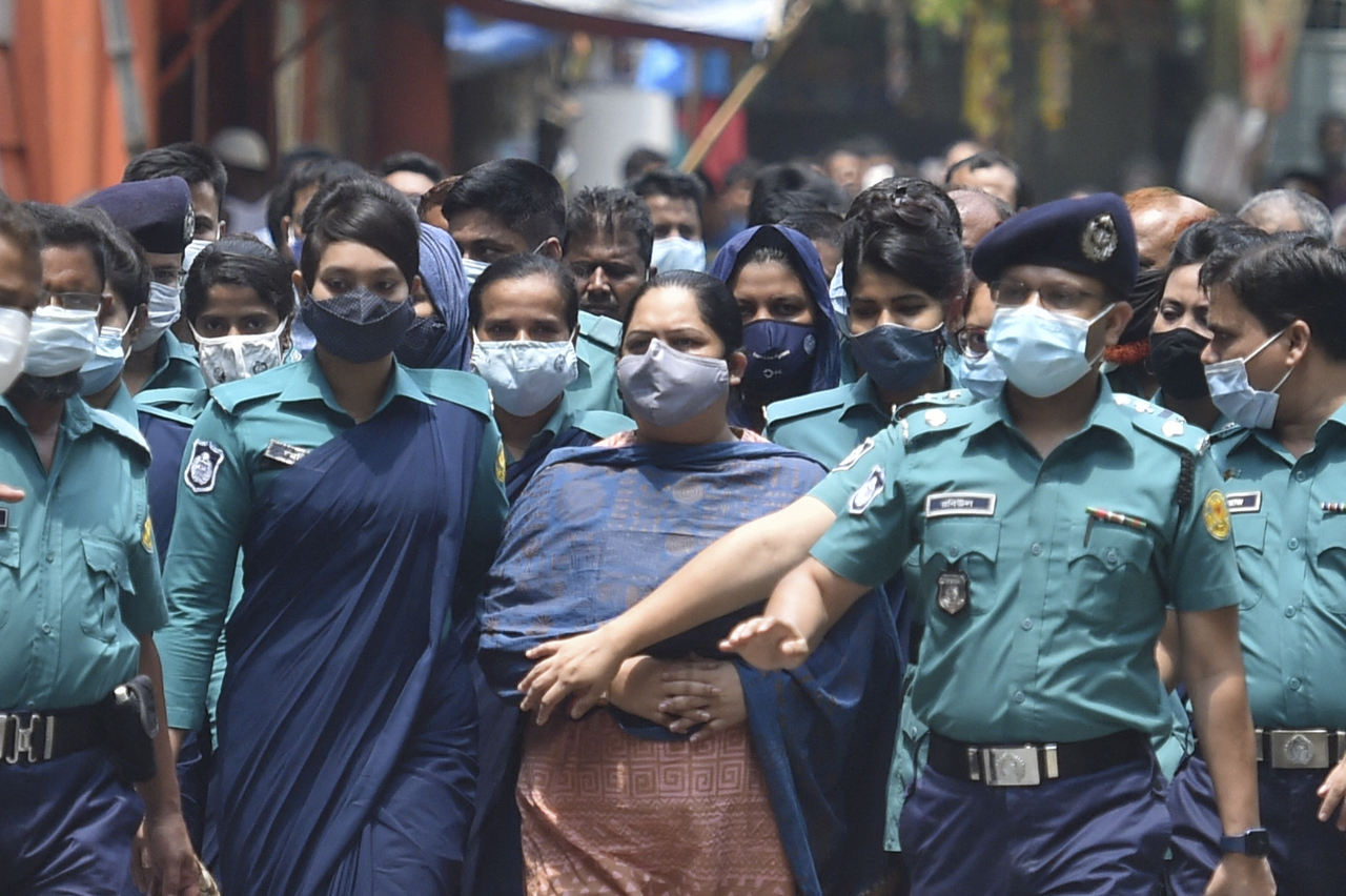 Police escort investigative journalist Rozina Islam to a court in Dhaka, on May 18, 2021.