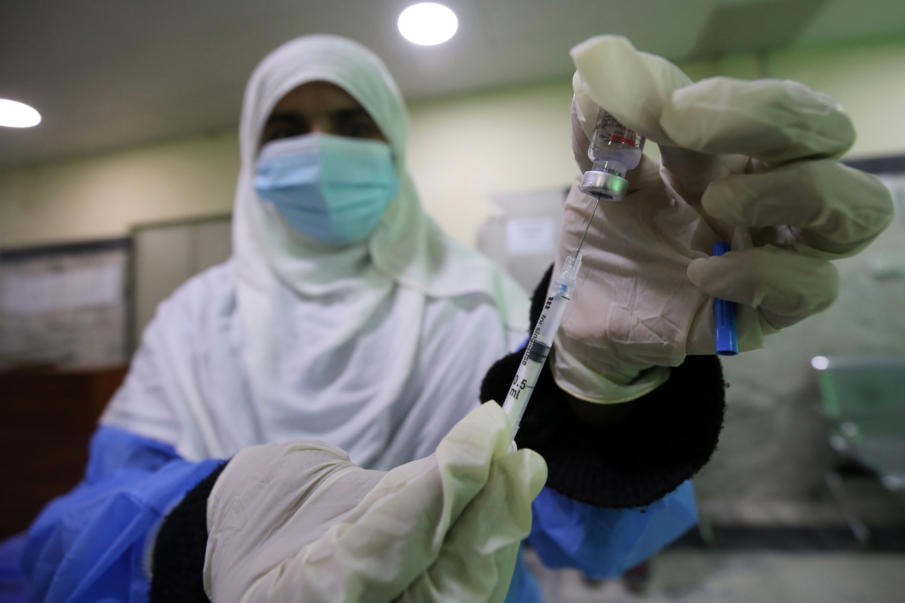 A health worker prepares to administer a dose of Covid-19 booster in Peshawar, Pakistan, on Jan 7, 2022.